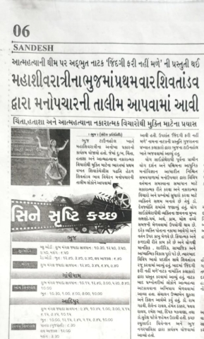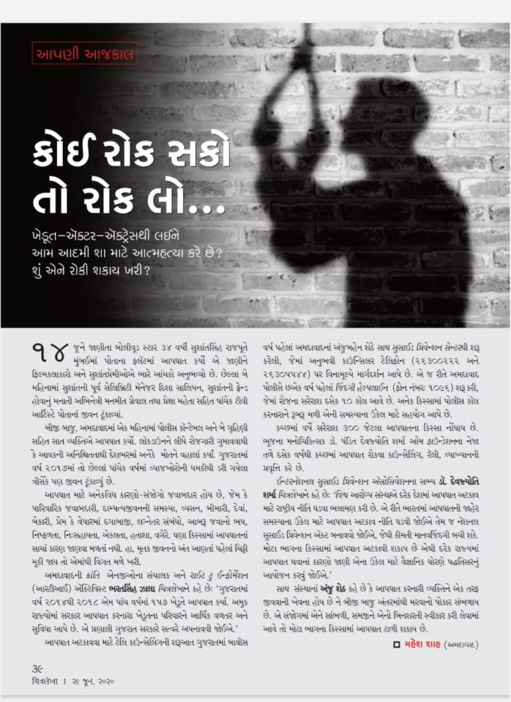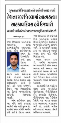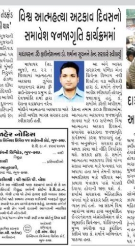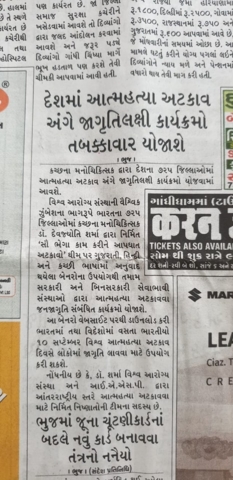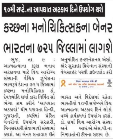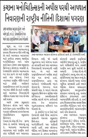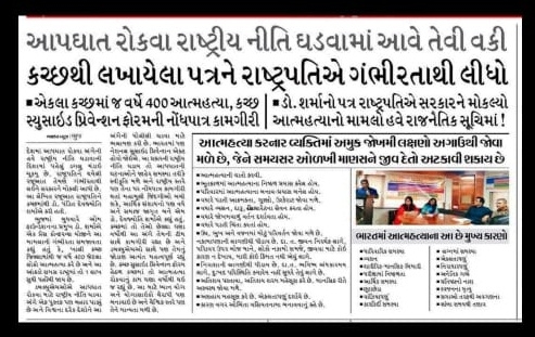 News in Kutchmitra newspaper regarding Suicide prevention helpine by Government.