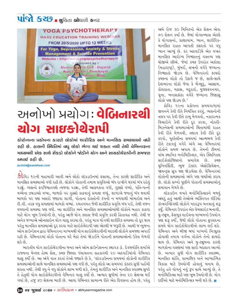 Yoga Psychotherapy Mass Education Webinar Training news published in the Abhiyan Magazine 04 July, 2020