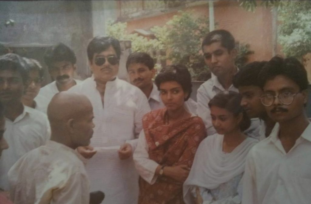 Memories : Helping makes life beautiful (Love Others and Save Life) -Filmstar Shatrughan sinha with team of Mecial Aid Service providing artificial limb to a needy person with the students of Nalanda Medical College in the year 1991 under the guidance of Project Chairman Dr.Devjyoti Sharma in Patna.