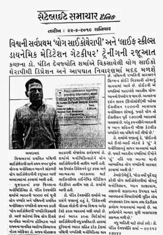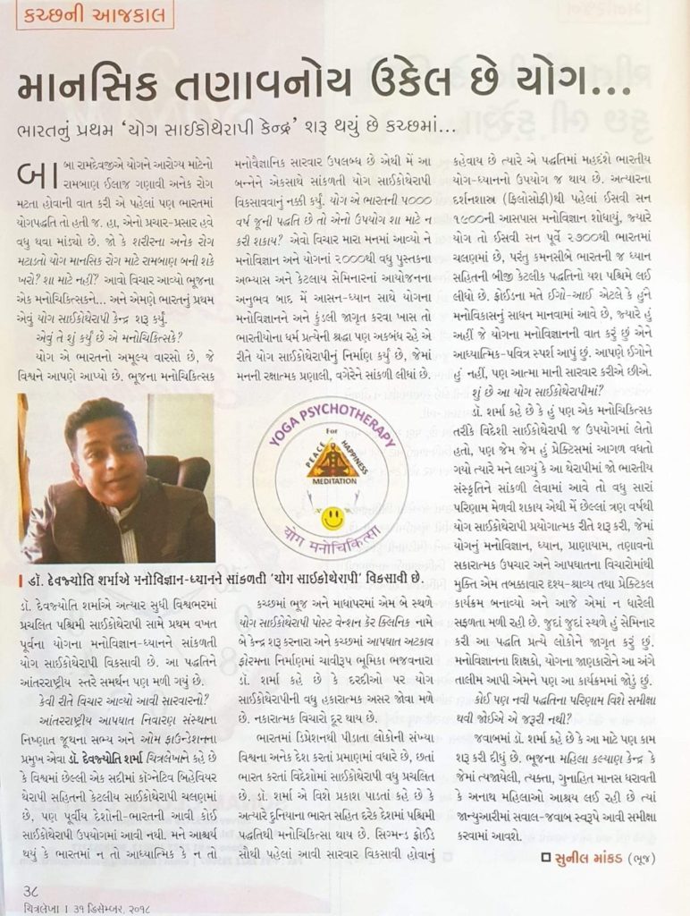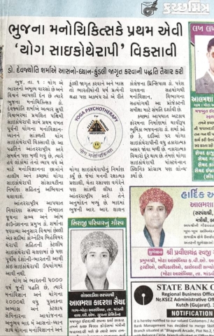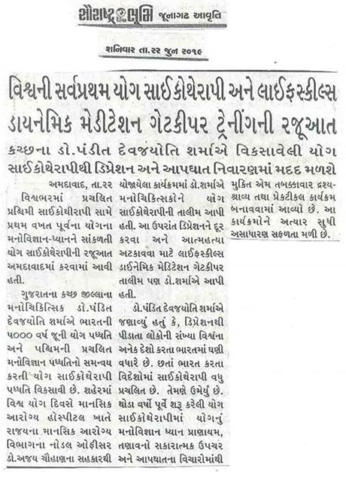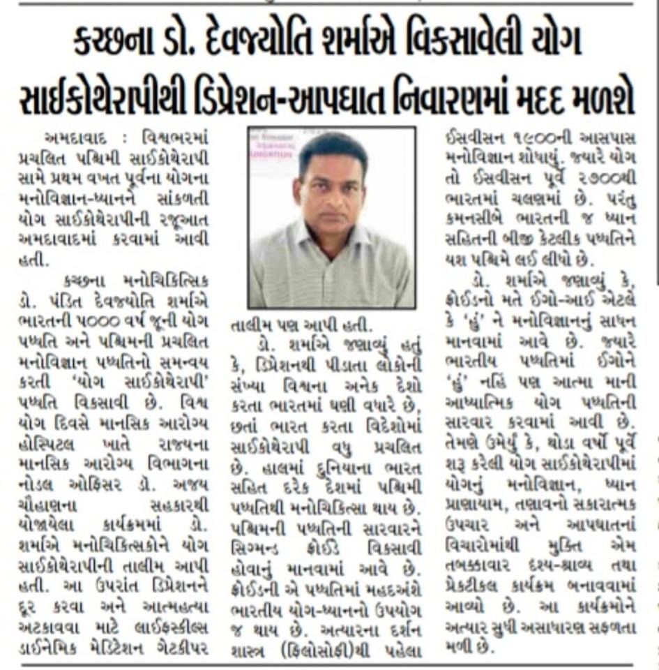 YOGA PSYCHOTHERAPY developed by Dr Devjyoti Sharma in Kutch will be helpful to Cure Depression and Prevent Suicude…News published in Kutch Uday Newspaper.
