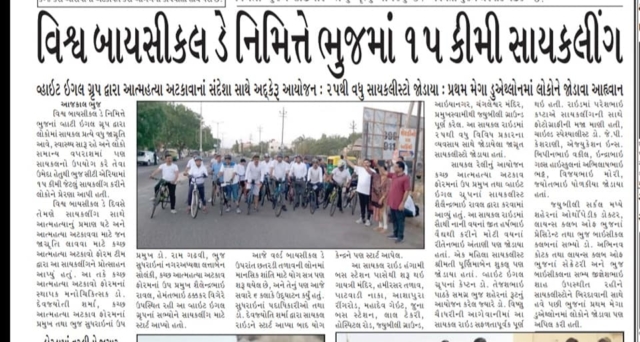 04-June-2019 :On the occasion of World Bicycle Ride Day on 3th June Kutch Suicide Prevention Forum has launched Suicide Prevention Awareness Bicycle Ride in Bhuj city under Project Chairperson Shailendra bhai Rawal spreading the message that suicide is preventable.
